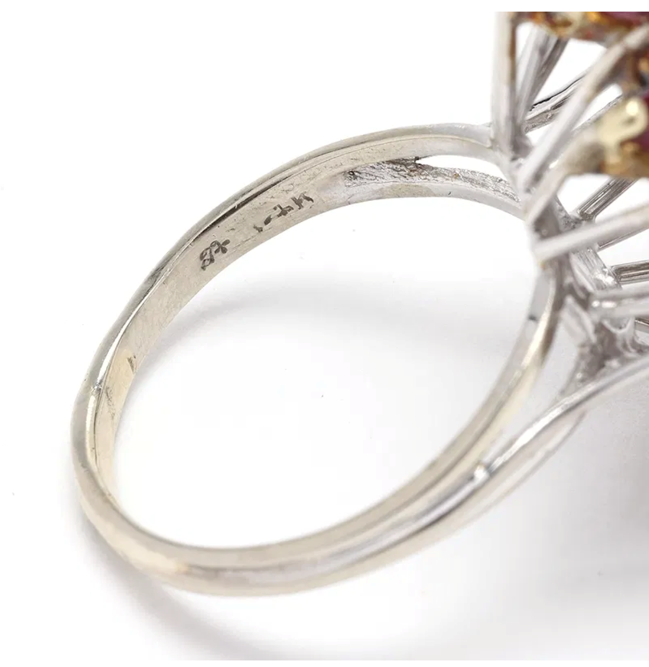 Item: Vintage 14K white gold Ruby and Diamond Cluster Cocktail Ring size 6.75